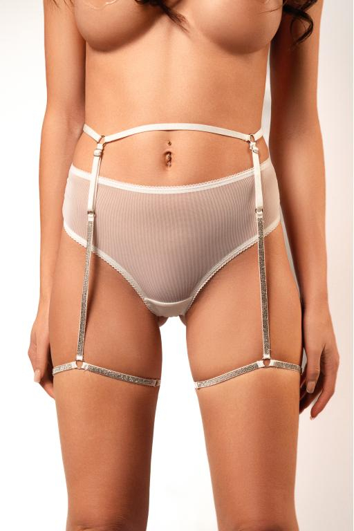 Пояс с гартерами выполнен из эластичных резинок и декорирован кристаллами. Придает образу особенный шарм!