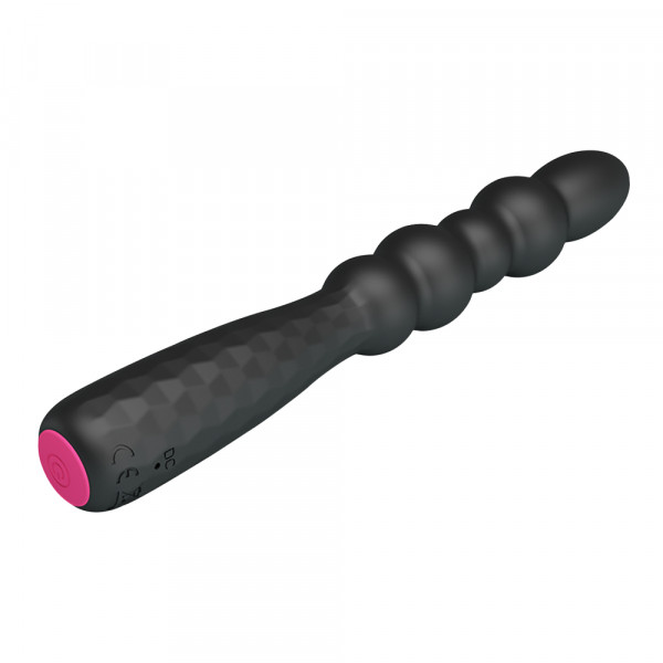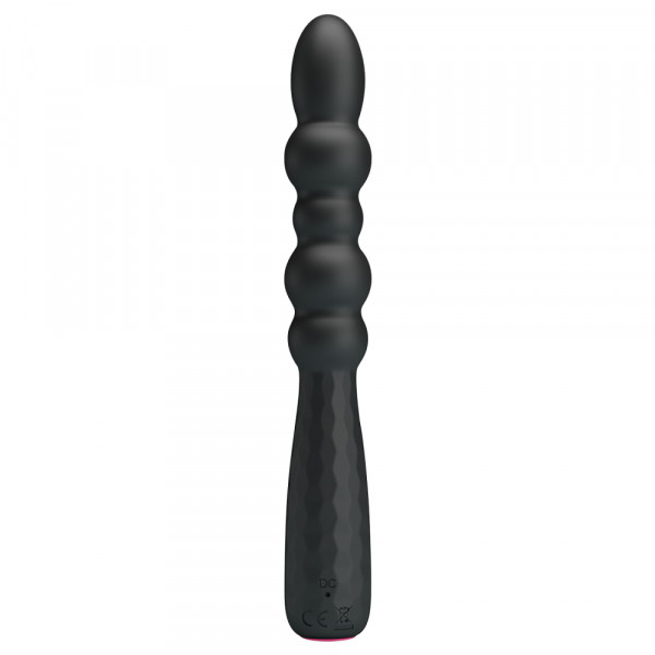 Выполнен вибратор в виде рельефного ствола из 5 шариков различного диаметра и удобной рельефной противоскользящей рукояти. Минимальный размер и диаметр девайса идеальны, даже для тех, кто впервые держит в руках анальную игрушку!