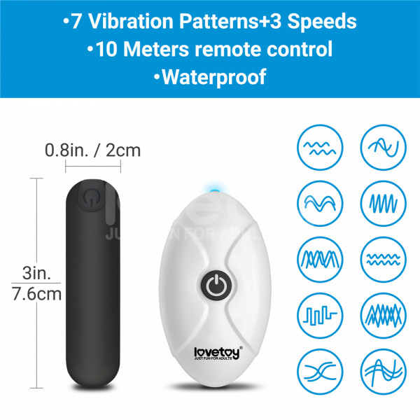 Вибропуля имеет 10 супер мощных, совершенно различных режимов. Управлять своим удовольствием, Вы сможете как при помощи кнопок на пуле, так и при помощи дистанционного пульта управления!